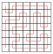 Hay 88418 rutas en una cuadrícula de , desde el cuadrado superior izquierdo hasta el inferior izquierdo. Cada ruta corresponde a una descripción de 48 caracteres: