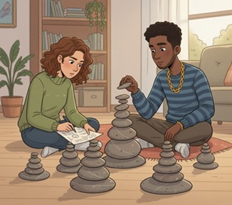 Ellos jugarán con montones de piedras. El